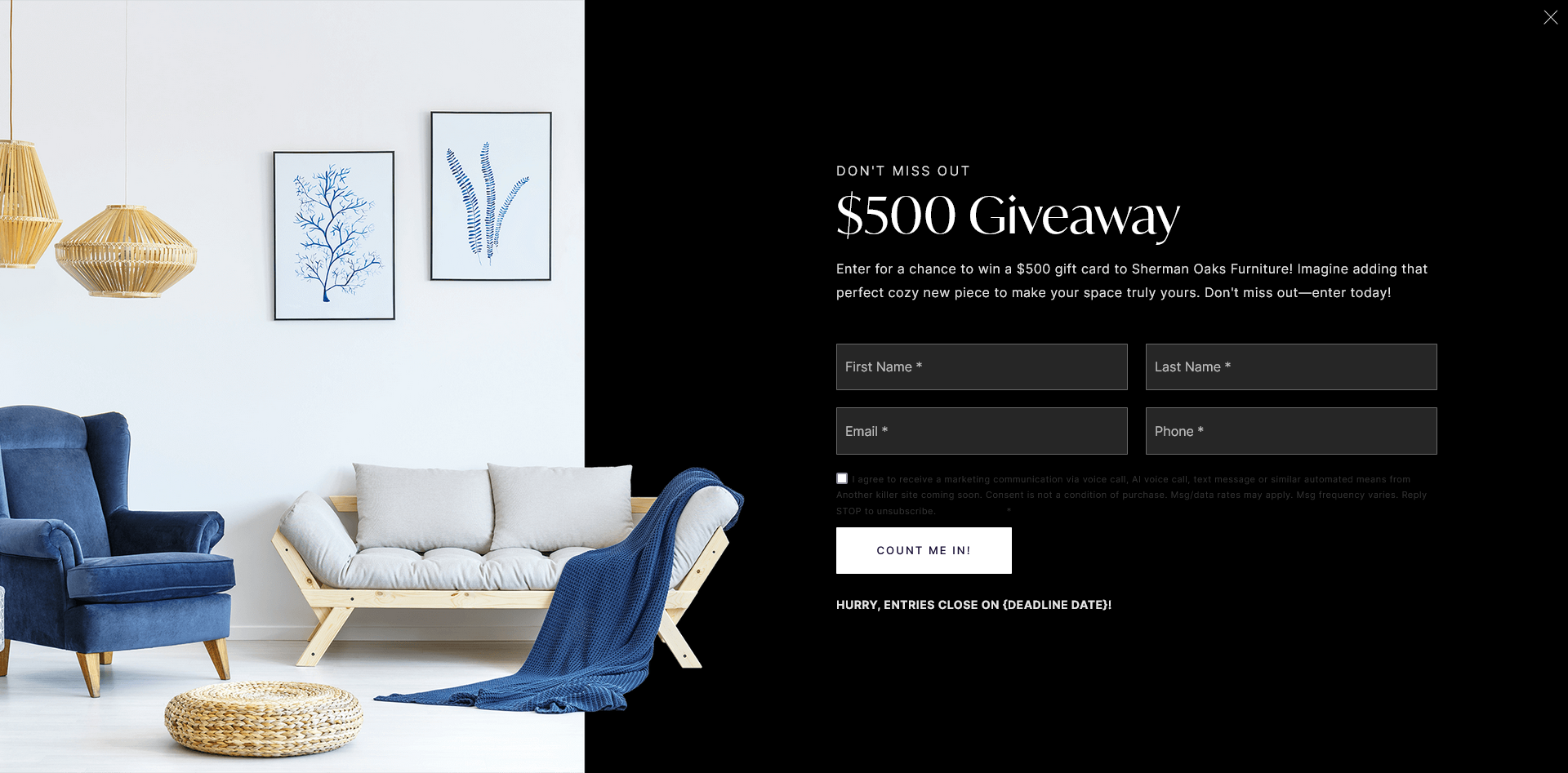 Full-Screen Giveaway: Engage visitors with enticing giveaways that position you as a local expert and build your community connection.