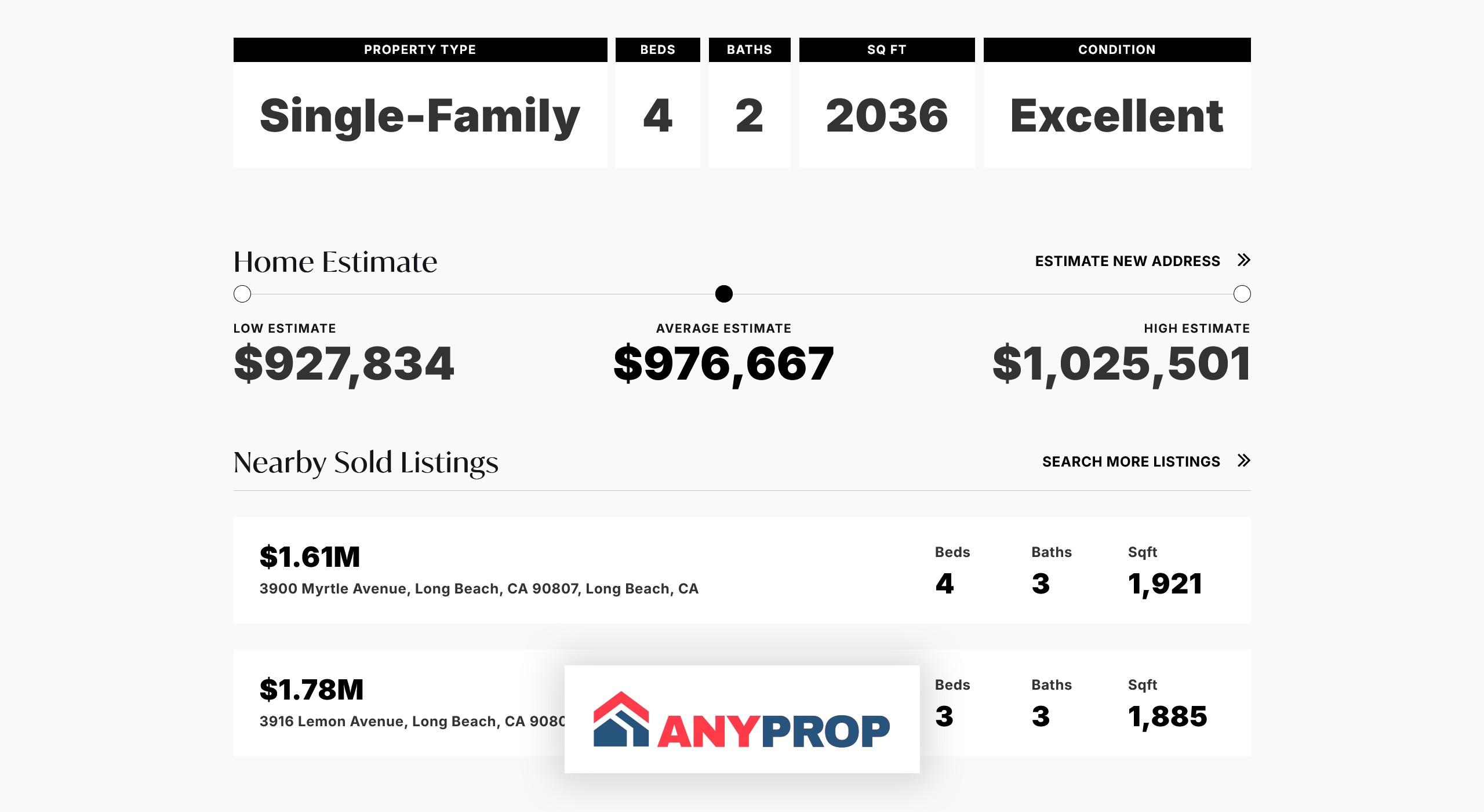 - Enhanced Accuracy: Property estimates are now powered by AnyProp’s robust data, delivering more precise and reliable valuations.